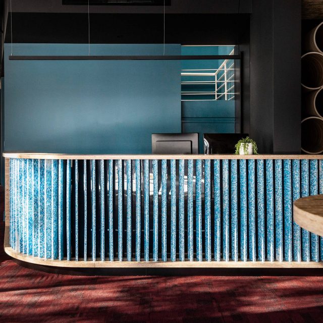 The theatre and internal bar are characterised as a fantasy forest with an imaginative landscape carved from an accumulation of steel tubes and lines of timber slabs. The entire space is illuminated with whimsical coloured lights making it a dreamlike place especially at night and for hosting events. Layers of detail reveal themselves throughout to enhance this feeling of being in a fantasy forest.