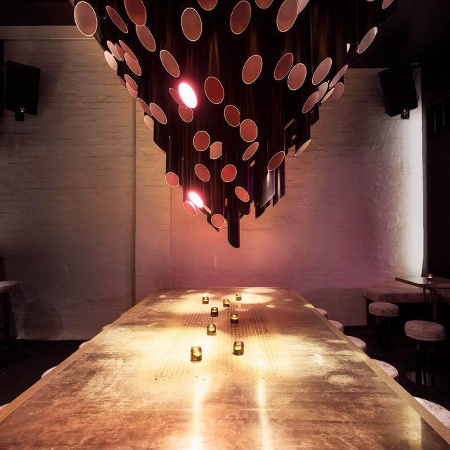 The experience of the space becomes multi-faceted with the introduction of theatrical lighting elements. Continuing the patterns derived from the brewing process, circular lights are integrated into the bar further accentuating the bar as the centre of the fit-out. A cutting-edge LED installation illuminates the screens through the spaces. A spotlight illuminates a large floral installation created by floral artists Alchemy Orange.