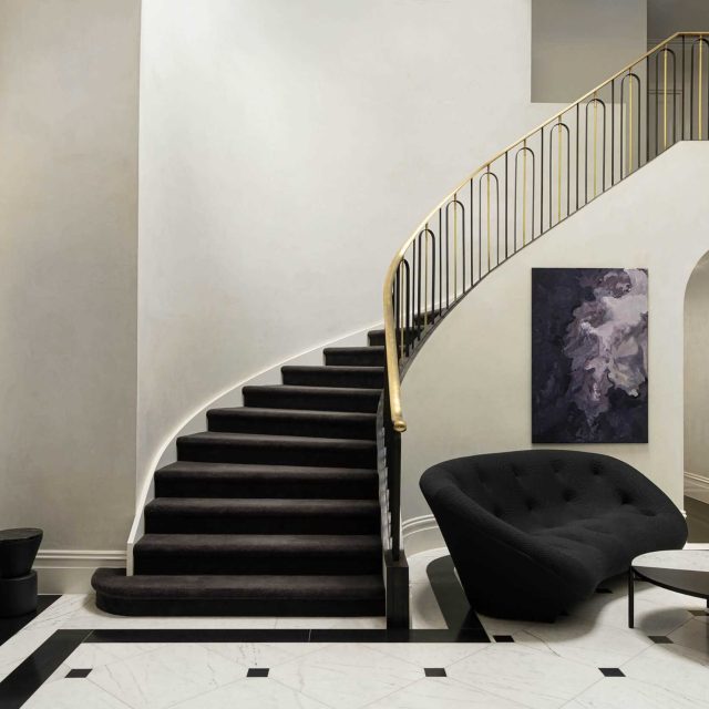 The driving concept is to create a ‘garden oasis’ within the confines of a building without existing outdoor space. The first response involves placing gardens across all four levels of the house connecting directly to internal spaces. The design solution allows the notion of ‘interior’ to extend beyond the infill, to the periphery of the warehouse walls, thus inviting the outside in. To add layers and maturity, the house also opens to surrounding neighbouring gardens beyond. This is made possible through a series of formal architectural decisions.