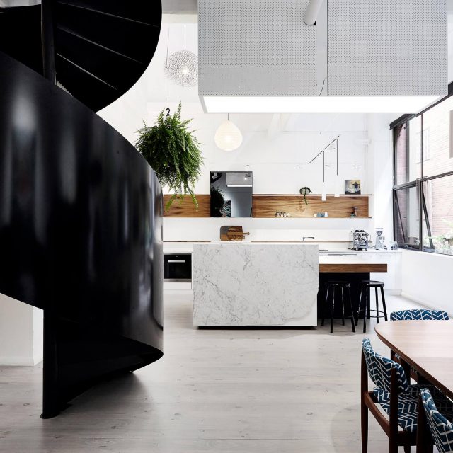 The Collingwood White House is an apartment in an urban warehouse conversion. Like a gallery, the design uses a minimal intervention to create a refined, loft-style backdrop for the clients’ developing collection of